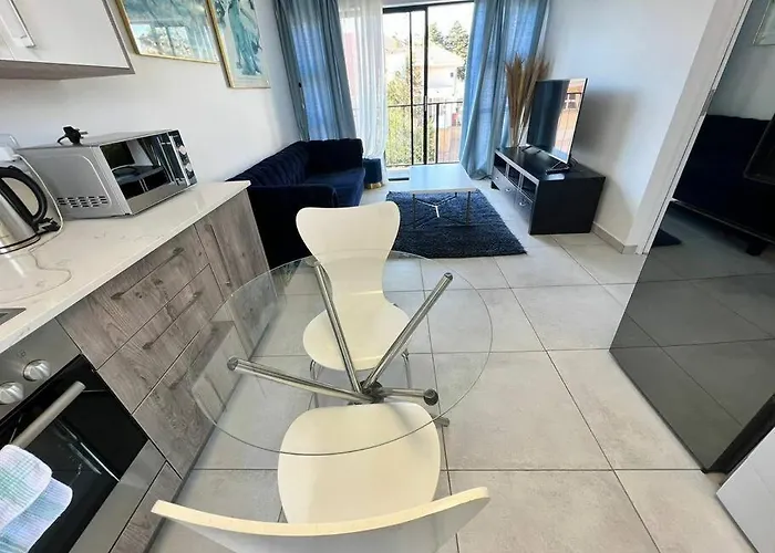 **The thoughtfully designed space features a well-appointed bedroom alongside a sleek living area that includes a flat-screen TV and a fully equipped kitchen.** Perfect for those who appreciate modern conveniences, the apartment boasts a private pool, providing an intimate setting to unwind after a long day. You'll also find essential amenities such as a washing machine, which adds to your convenience during your stay.